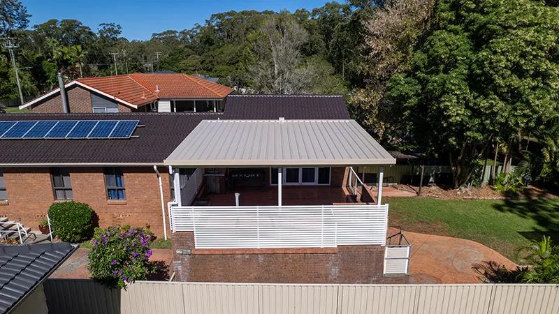 Ausiports Flat Roof Awnings, also known as Skillion Roof Awnings, offer an extremely versatile, economic roofing solution which can be tailored to maximise the usability of the area covered. Available in a range of roof deck profiles with high strength polycarbonate light panels and a range of high gloss Colorbond colours, an Ausiports Flat Roof Awning has all your needs covered.